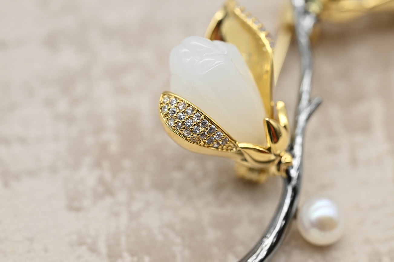 Ideal as a thoughtful gift or a special addition to your own collection, this brooch embodies the grace and beauty of magnolia blossoms. Let the Blossoming Magnolia Brooch enhance your style with its exquisite design and timeless charm.