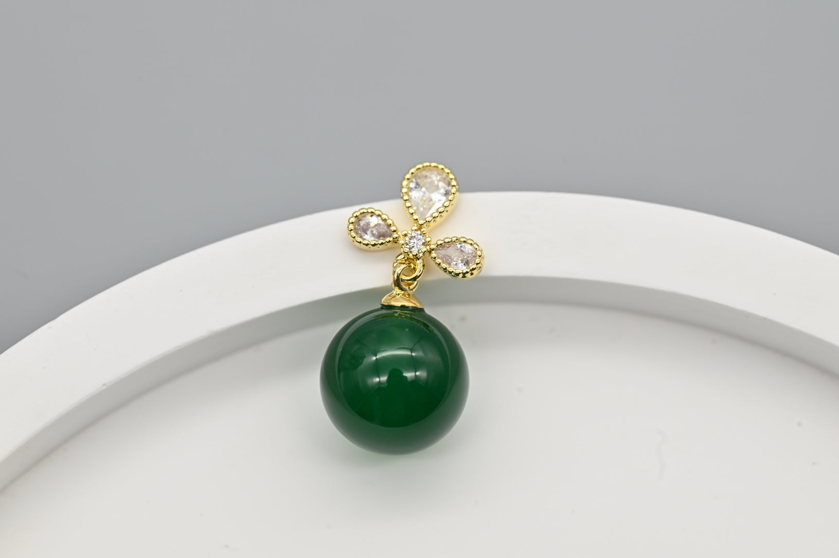 These elegant earrings feature rich green gemstones that dangle gracefully from delicate crystal-accented bows. The combination of the vibrant green and sparkling crystals adds a touch of sophistication and charm, making them perfect for both formal occasions and adding a hint of luxury to everyday outfits.